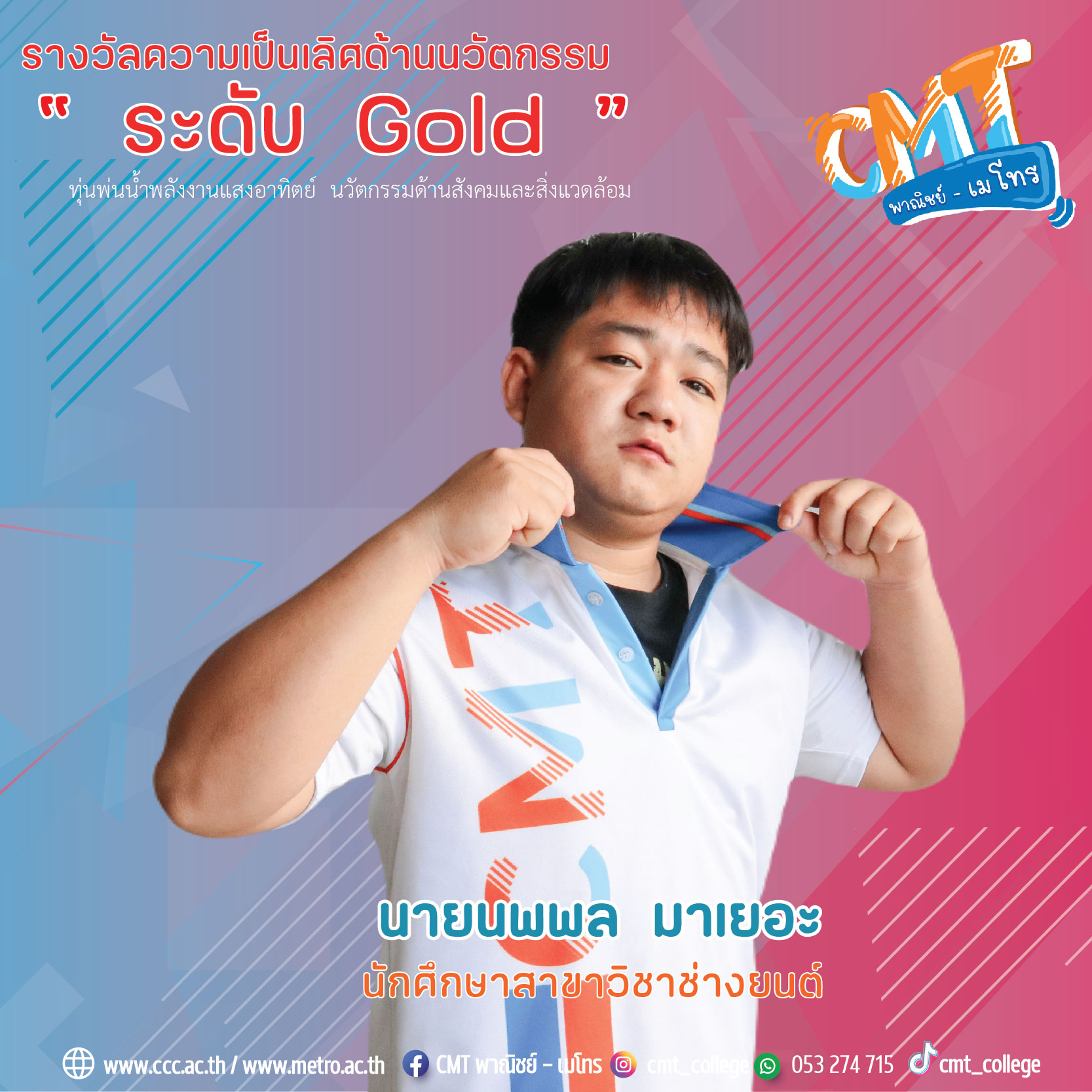 สถาบันกลุ่ม CMT พาณิชย์ - เมโทร นำโดยนายมารุต ศิริธร ท่านผู้อำนวยการ ได้รับเชิญ ให้เป็นประธานมอบเหรียญรางวัล