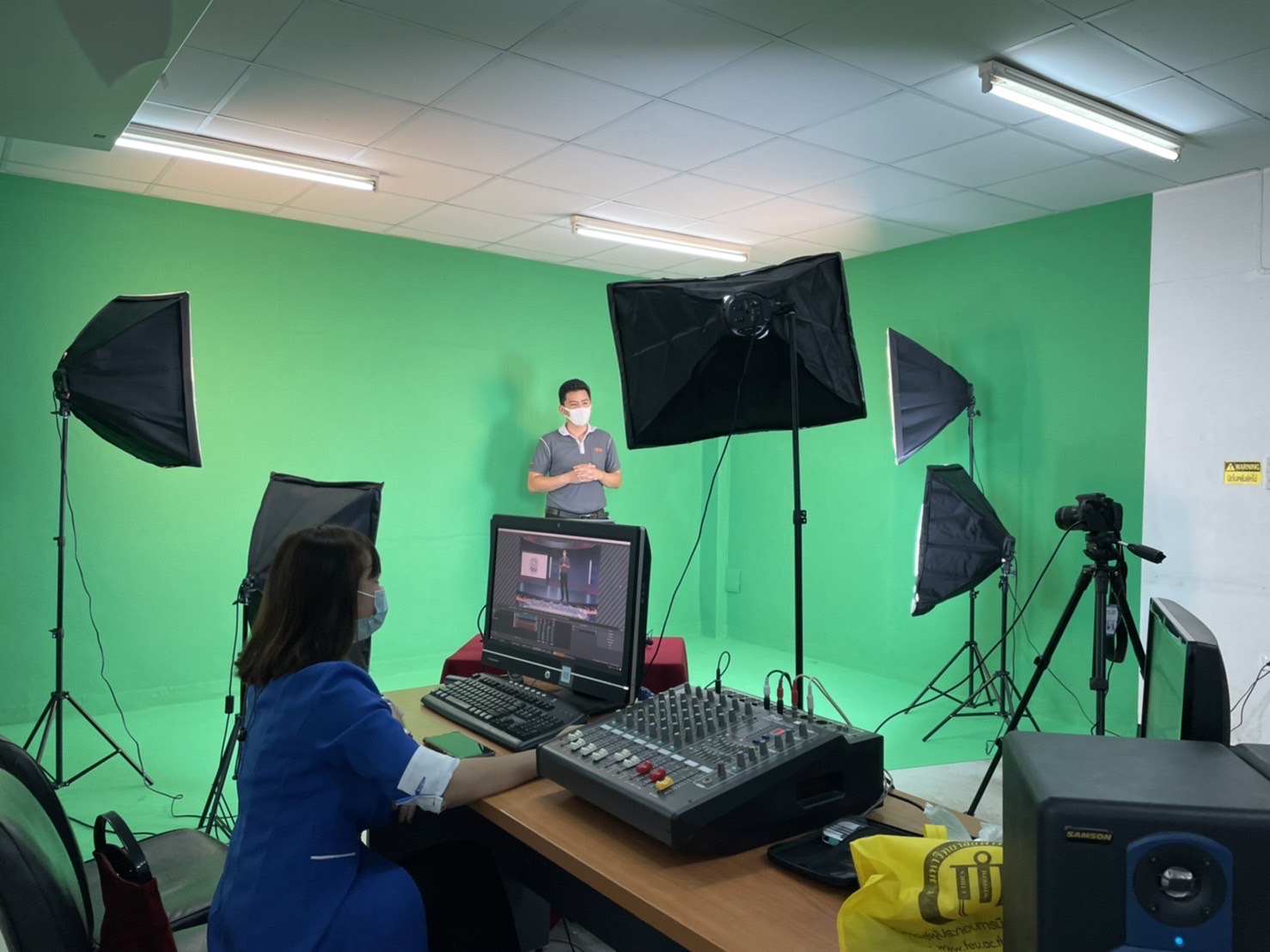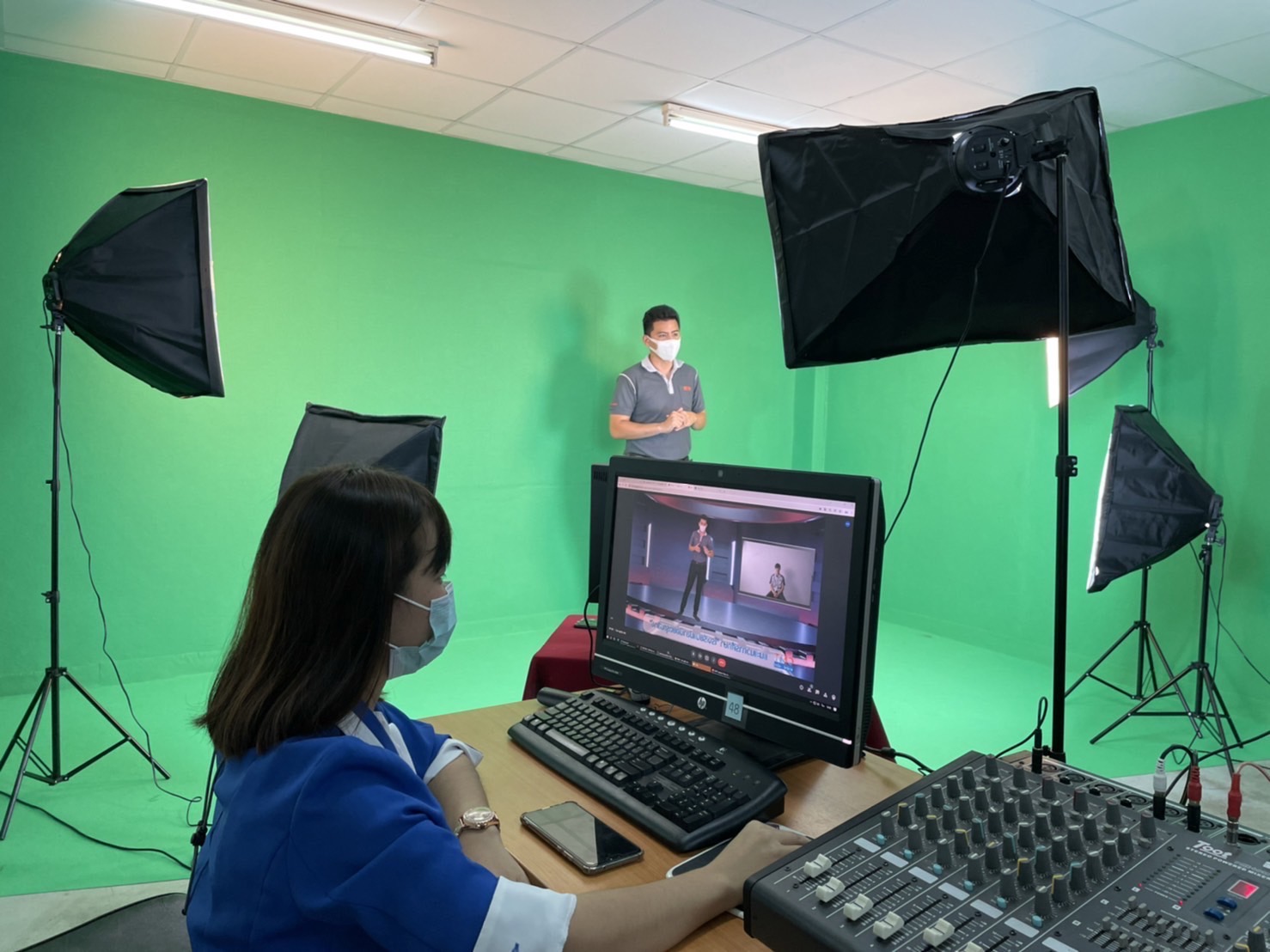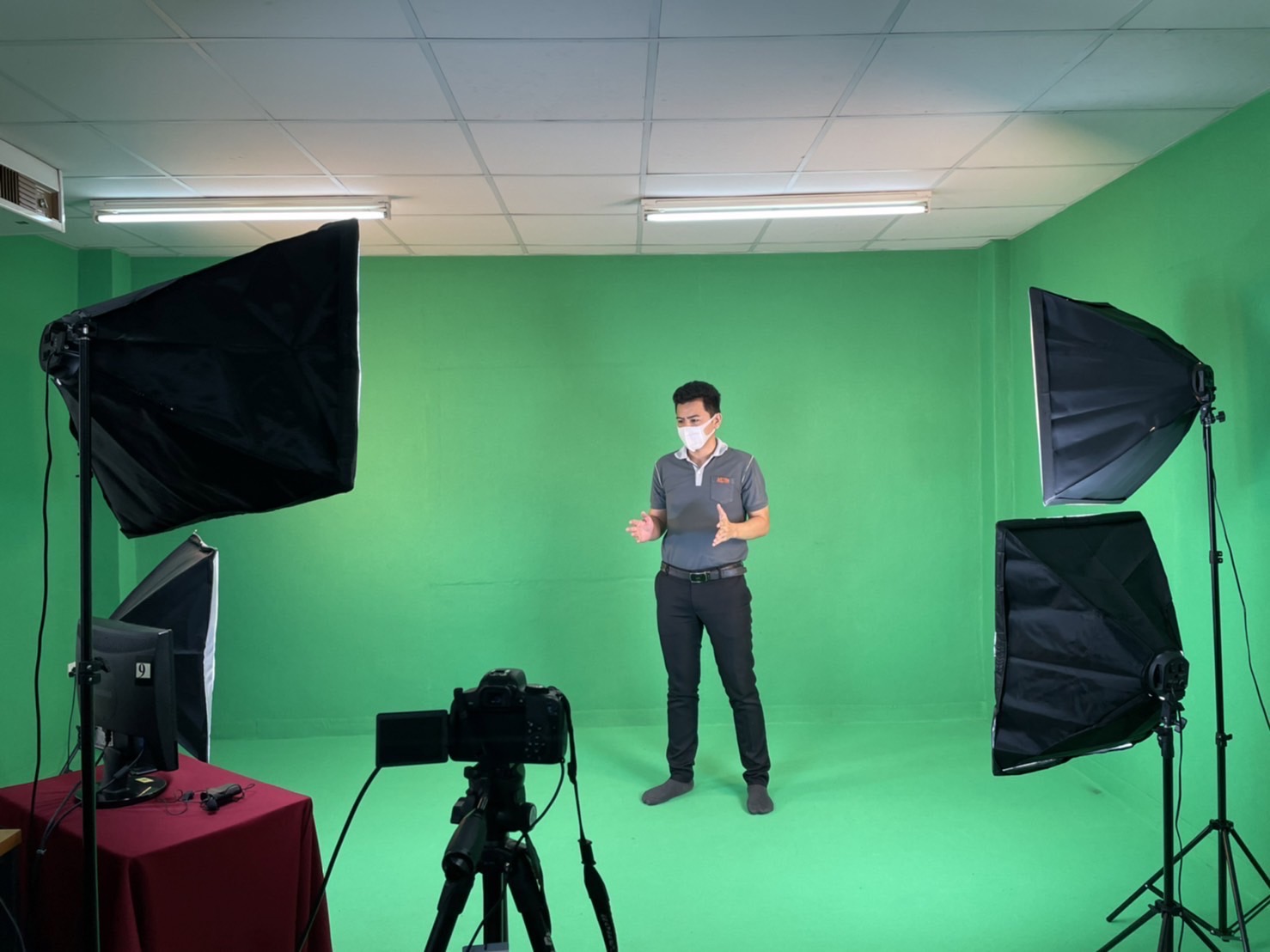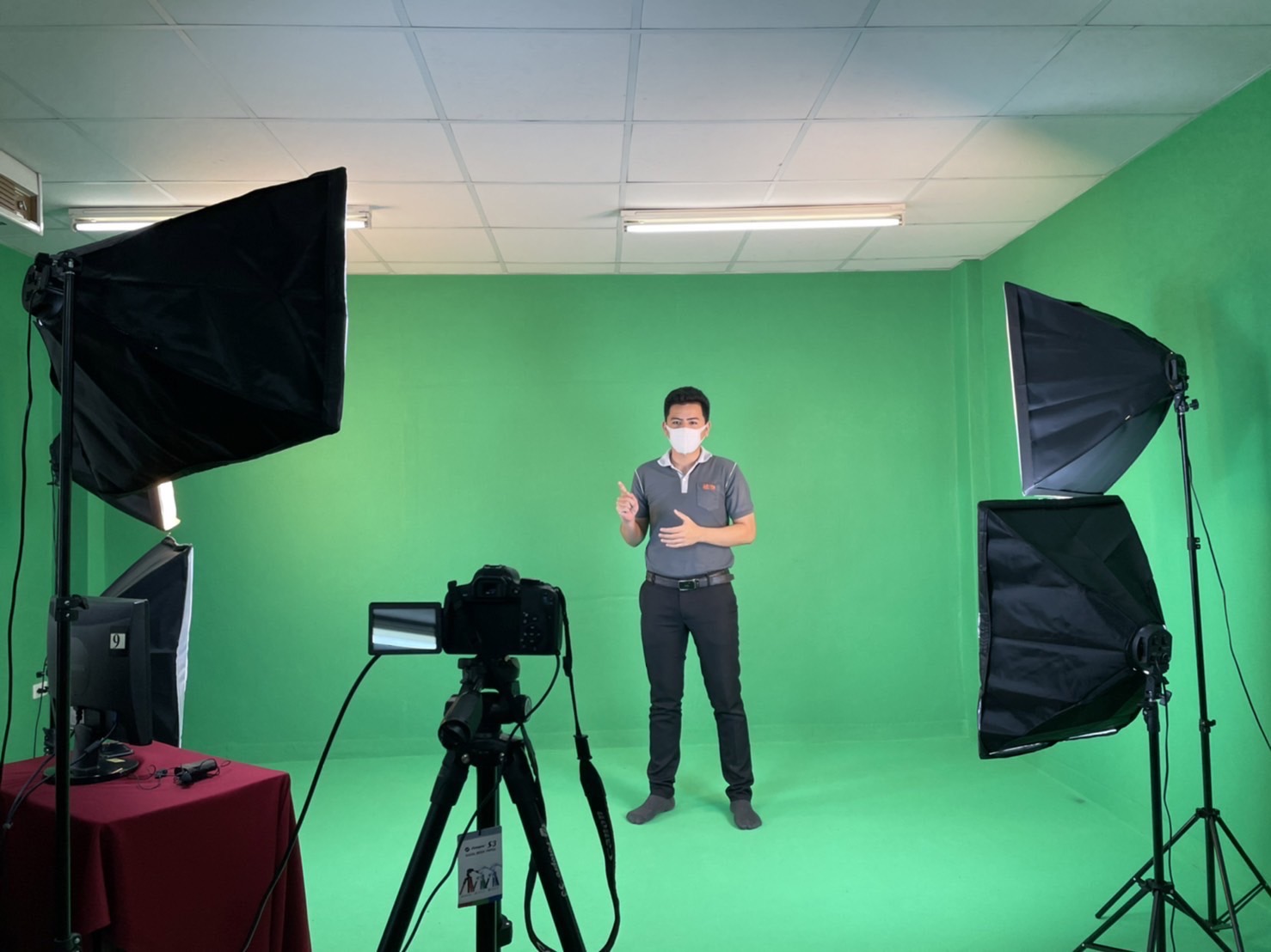 ผู้อำนวยการ ทีมแนะแนวและประชาสัมพันธ์ สถาบันกลุ่ม CMT พาณิชย์-เมโทร ทดสอบการทำงานของห้อง Studio ใหม่