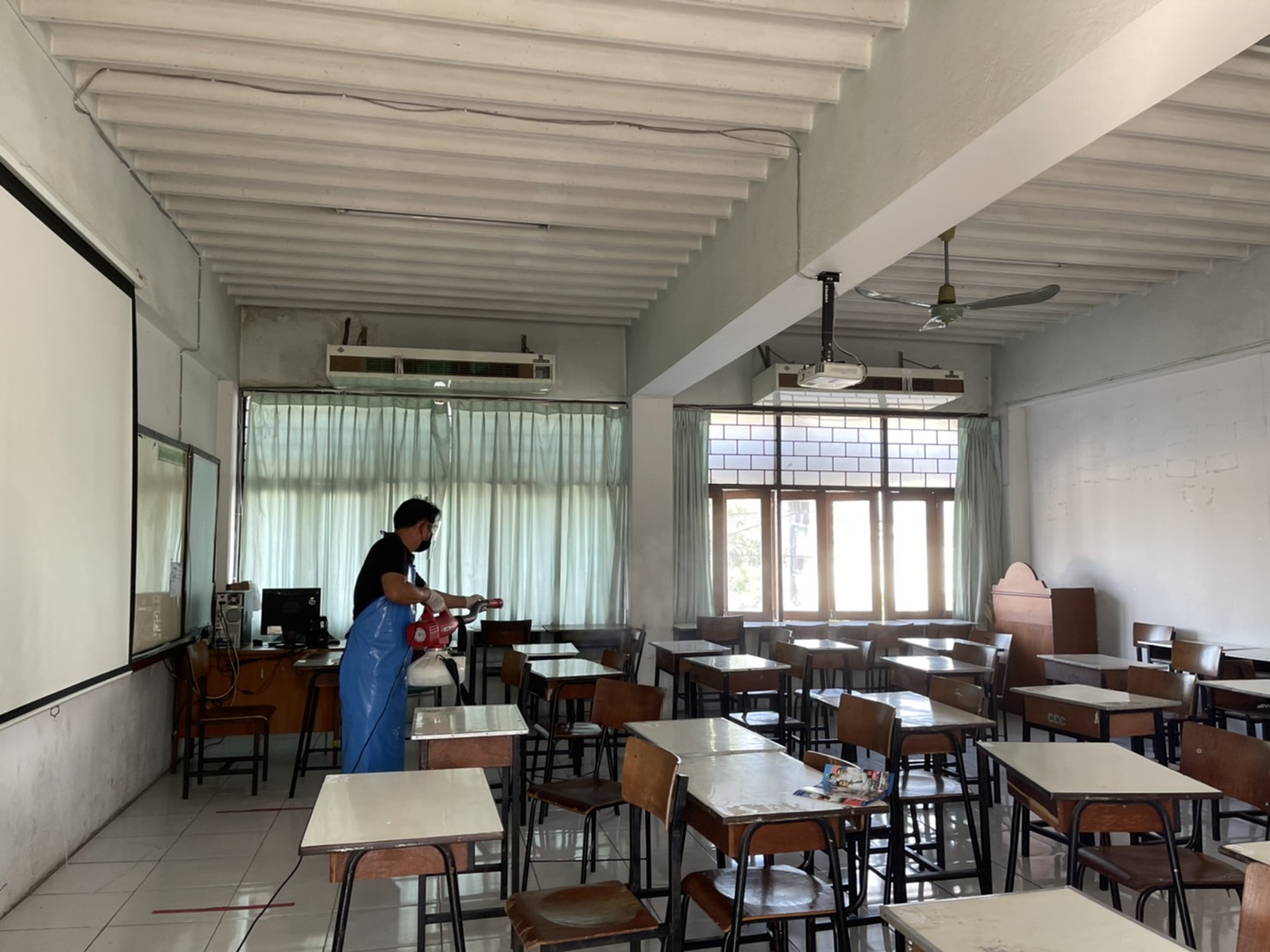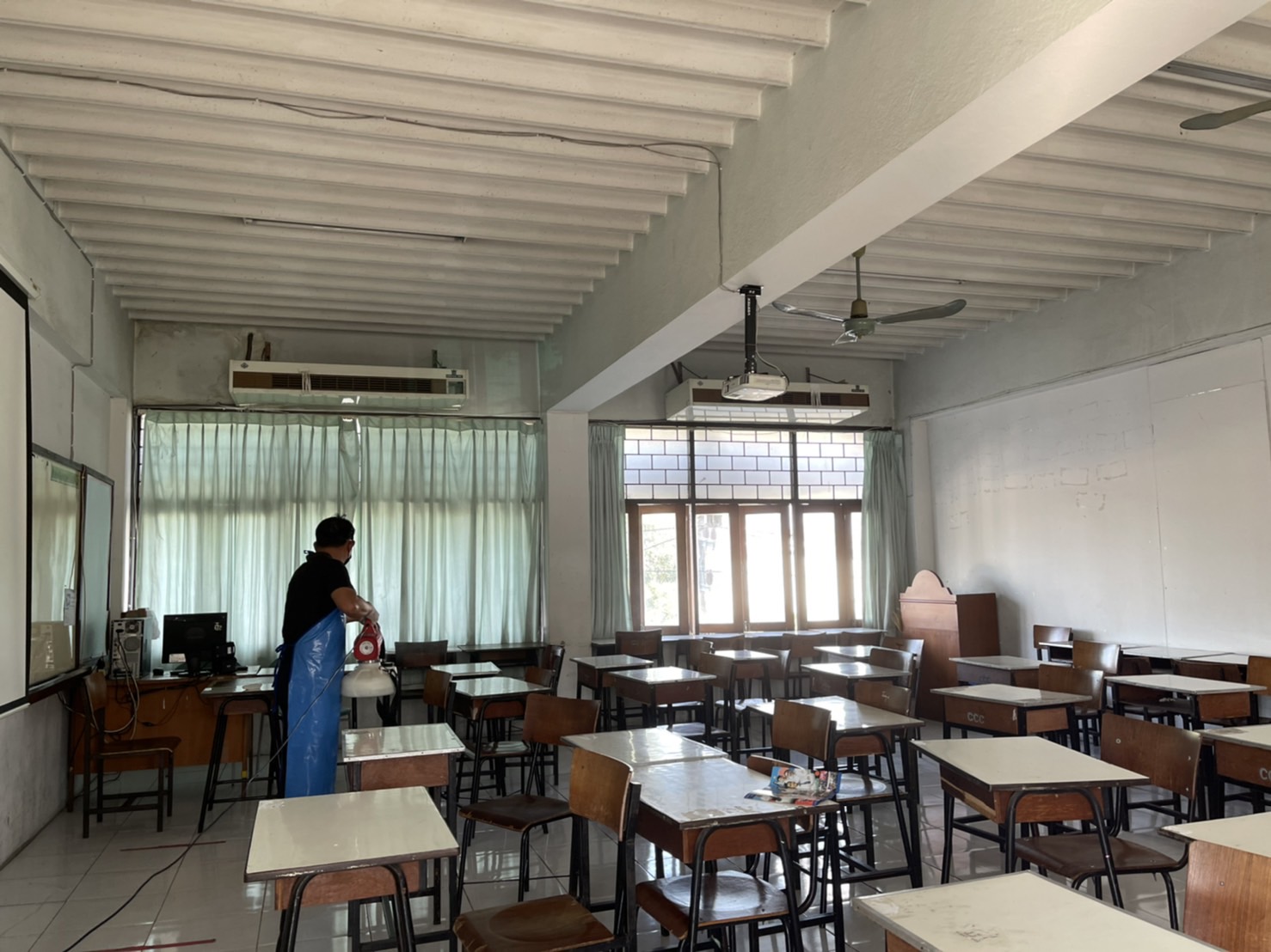 สถาบันกลุ่มCMTพาณิชย์ - เมโทร ได้ดำเนินการฉีดน้ำยาฆ่าเชื้อป้องกันเชื้อโรค Covid ภายในวิทยาลัย