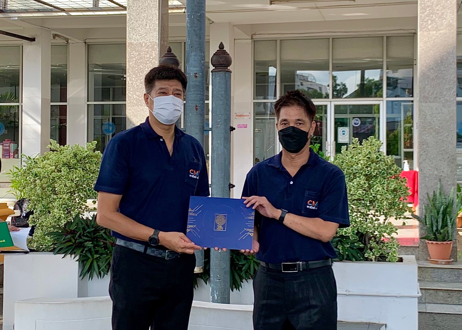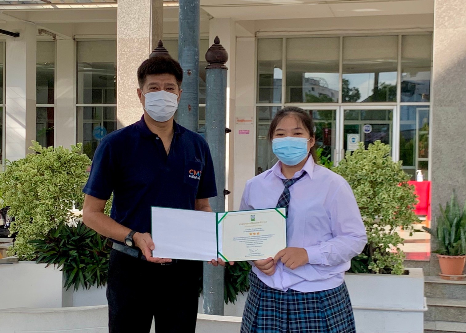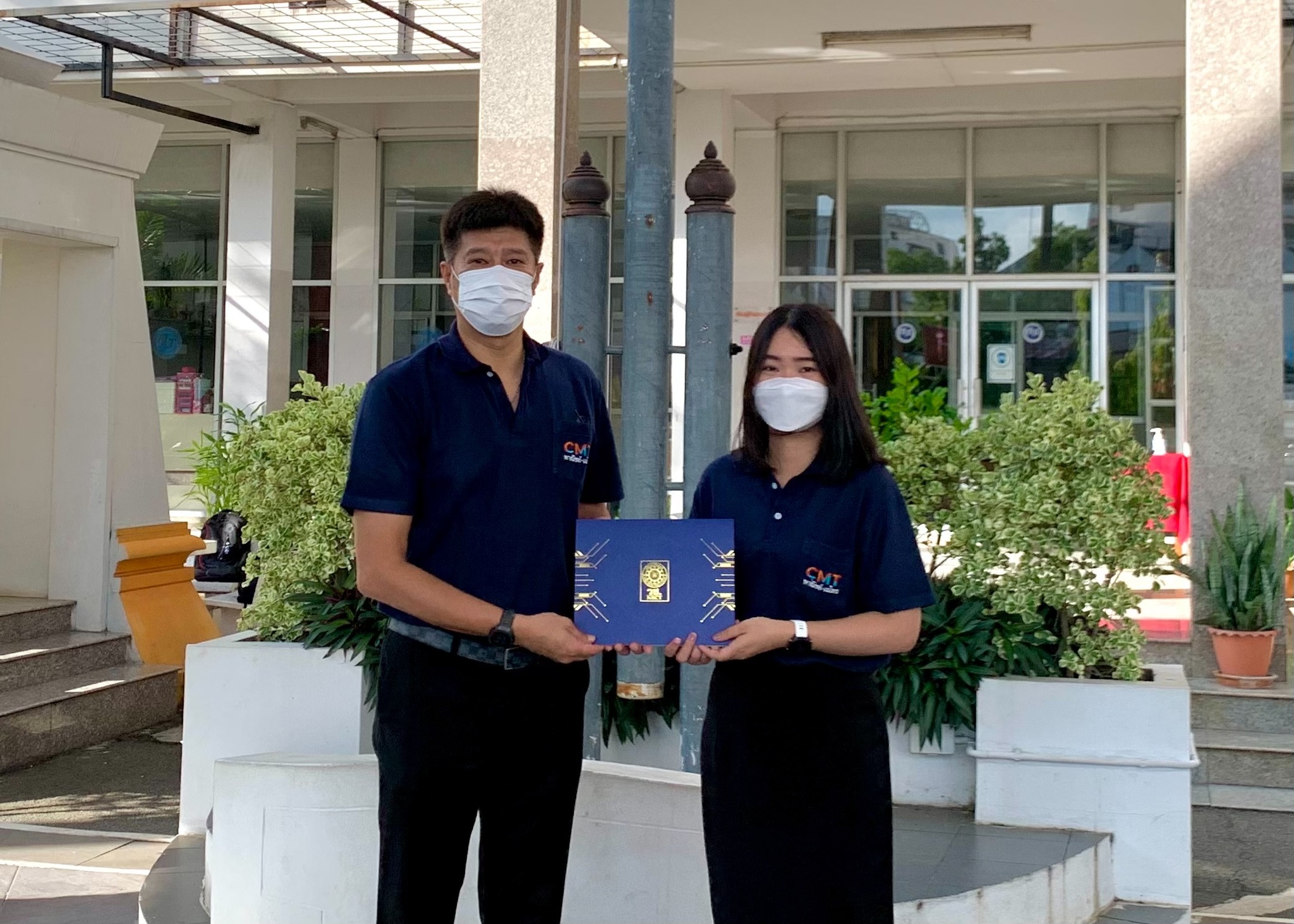 นายมารุต ศิริธร ผู้อำนวยการสถาบันกลุ่ม CMT พาณิชย์-เมโทร มอบเกียรติบัตรแสดงความยินดีให้กับตัวแทนบุคลากรและนักศึกษา ที่ได้รับรางวัล