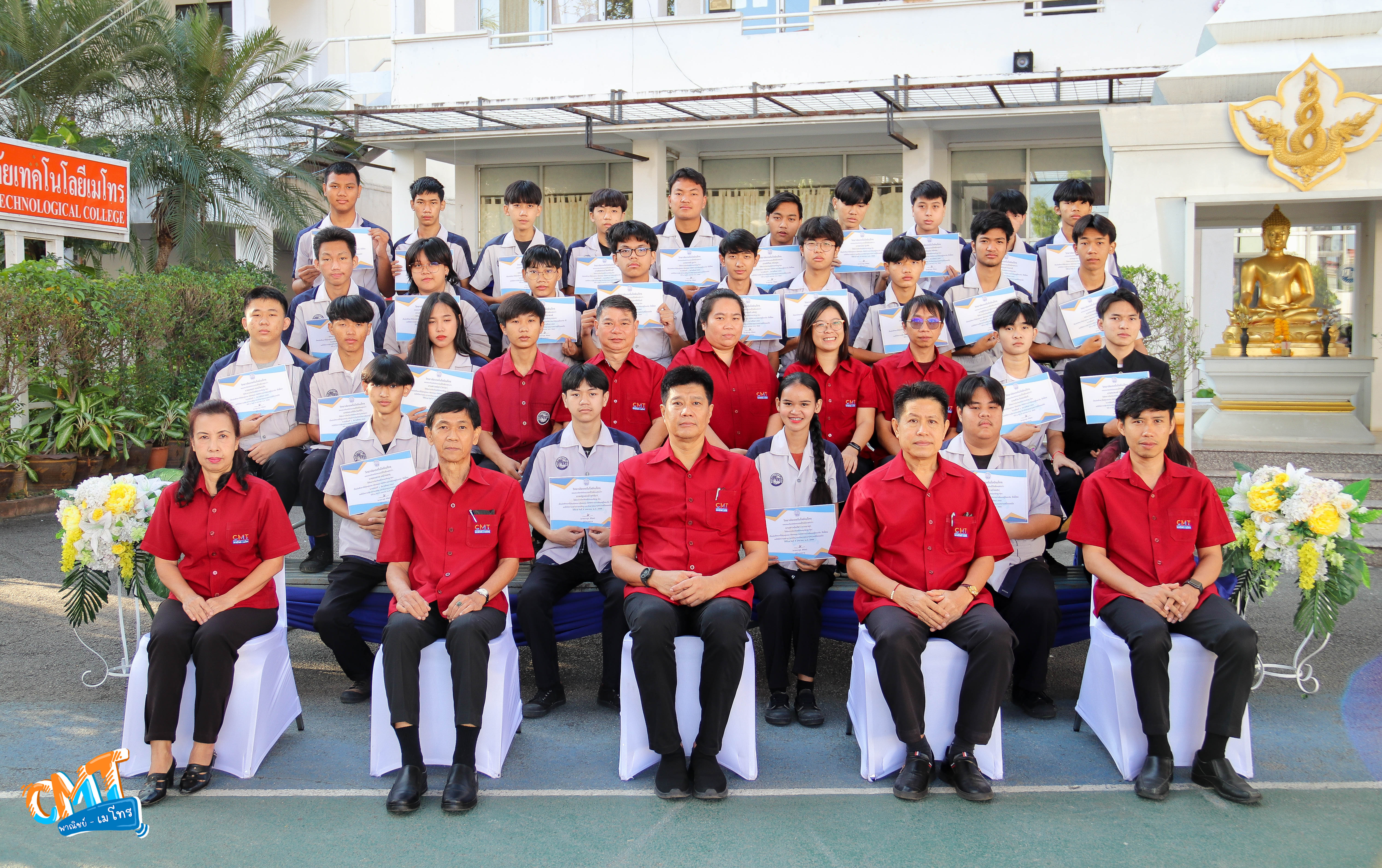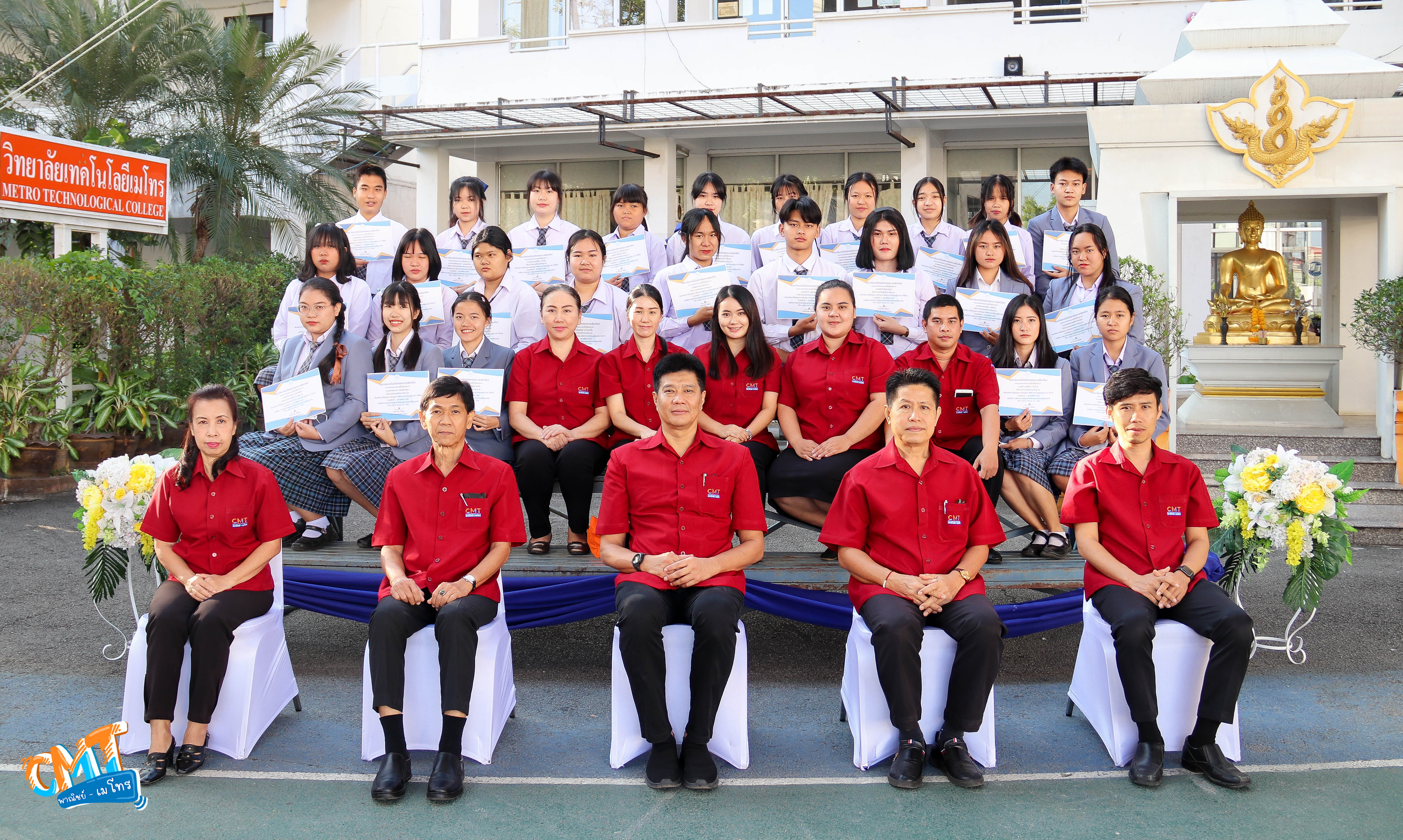 นายมารุต ศิริธร ผู้อำนวยการสถาบันกลุ่ม CMT พาณิชย์ - เมโทร และคณะผู้บริหาร ร่วมถ่ายภาพมอบเกียรติบัตรให้กับนักศึกษาที่มีคุณธรรม จริยธรรม มีสถิติการมาเรียน ดีเยี่ยม/ดีมาก/ดี ของภาคเรียนที่ 1 ปีการศึกษา 2565 โดยมอบเกียรติบัตรเหรียญ ทอง ระดับ ดีเยี่ยม, เกียรติบัตรเหรียญ เงิน ระดับ ดีมาก และเกียยรติบัตรเหรียญ ทองแดง ระดับดี